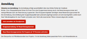 2.) Du klickst auf das mittlere Feld „Gruppenanmeldung mit Reservierungsnummer“.